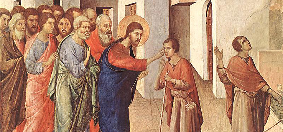 Thaum ob tug dig muag raws Yes Xus los txog tom tsev, Yes Xus mam li nug tias “Neb puas ntseeg tias kuv kho tau neb qhov muag?” Nkawd teb tias “Huab Tais, wb ntseeg”, ces Yes Xus thiaj teb rau nkawd tias “Yog nej ntseeg li ntawd, ces thov kom muaj raws li nej ntseeg.” Tam sim ntawd, nkawd ob lub qhov muag qhib plho, ces nkawd rov pom kev.