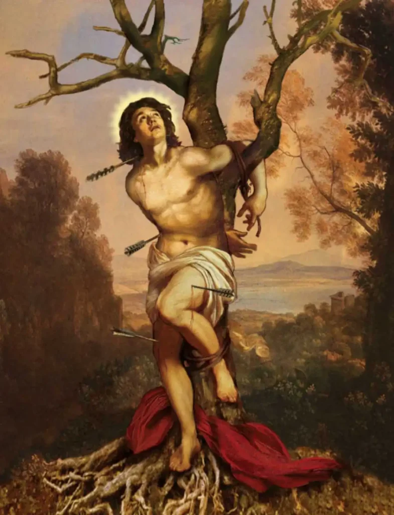 Muaj ib co tub rog tsis nyiam Xes Npas Tias Nus, lawv mus hais qhia rau tus vaj, ces Xes Npas Tias Nus raug muab hneev tua kom tuag. Lawv muab Xes Npas Tias Nus khi rau ntawm ib tug ntoo, ces lawv xuas hneev tua nws. Xub ntsia nws ib ce lo ntshav tas. Lawv xav tias nws tuag lawm, ces lawv tso nws lub cev nyob ntawd.